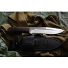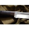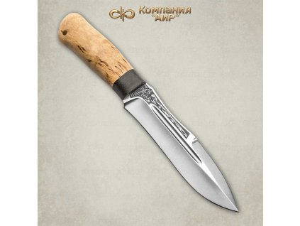The "SCORPION Leather" tourist knife from ZLATOUST AIR is a temporary choice between a large knife and a small machete. The knife is equipped with features that allow you to use it to solve various problems. The balance of the knife is shifted towards the tip. It is advisable to cut the branches with a knife, mow the log and plan the wood. With such a knife it will not be difficult to equip a tent for an overnight stay in the winter forest. The handle from Karelská birch warms the hand, even though the work is taking place during extreme cold. Leather sheaths securely fix the knife, thus eliminating the possibility of its loss.