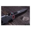 Dagger blade shape with false blade predetermines high penetration ability. Additional lateral stiffness achieved by fuller. For cutting perfection with thick enough blade hollow grind is used, providing an absolute control over the cut. Opening is enhanced with ball bearing, making the opening a snap. The handle has a powerful 2.2 mm (0.087”) frame with two pointers serving as a glass braker. Additional safety is provided by liner lock, eliminating closing of the blade under load.